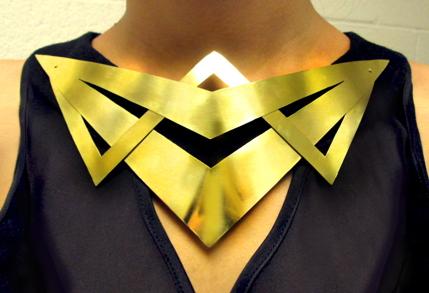 Brass Metal Neck Piece Published January 3, 2014 at 1440 × 984 in Accessories ← Previous Next → Brass Metal Neck Piece, Hand Cut and Forged Using Traditional Metalsmithing Techniques. Award: Little Black Dress Designer Award